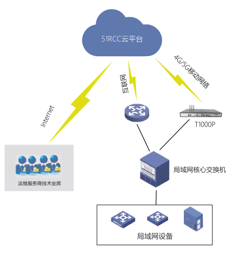 该解决方案是五壹星针对IT厂商、代理商、集成商等运维服务商等推出的一套针对其中小甲方用户的SaaS服务运营解决方案。只需在甲方用户机房旁路部署一套51FACT 服客通边缘计算网关(T1000P)即可实现整个机房IT设施的实时监测和故障的主动上报,收到故障告警后具有管理权限的坐席工程师即可通过51FACT 服客通技术运营数字化管理系统对用户设备故障进行可视化远程运维。该类客户具有允许云运维、IT服务预算少等特点,运维服务商可通过“以租代售”模式快速部署51FACT 服客通边缘计算网关 (T1000P)实现服务运营,同时帮助甲方客户节省服务预算。