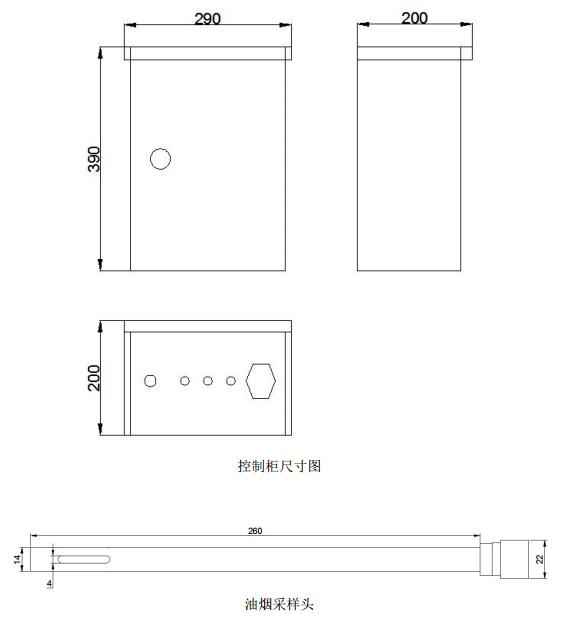 1路油烟浓度检测,采用最新的光声学检测原理,数据零漂小,稳定性好;1路颗粒物检测、1路非甲烷总烃检测。