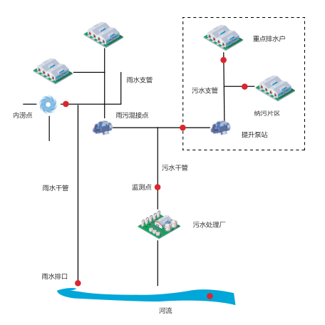 五壹星智慧排水解决方案(51X-SWD)通过“监测一张网”的思路,以“源头-过程-末端”为指导,涵盖“源-网-站-厂-河”的分层分类精细化监测,为水环境系统综合评估及分析诊断提供长期、有效、准确的监测数据,动态监测水环境系统的运行状况及风险,在污染源、设施、水体全过程数据异常时快速进行事故溯源、追踪和预警,识别水环境系统设施的运行规律,定量化评估水环境综合整治相关工程的实施效果,提高水环境系统事故的预警和处理能力,提高城市水环境系统的动态管理能力。