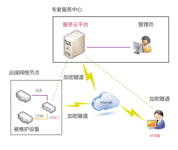 针对广大中小客户推出的一套极简云化部署的机房监测解决方案,通过51FACT 服客通边缘计算网关(T1000P)设备对客户机房设施进行24小时不间断监测,发生网络故障时及时通知责任工程师进行远程运维和故障恢复处理。